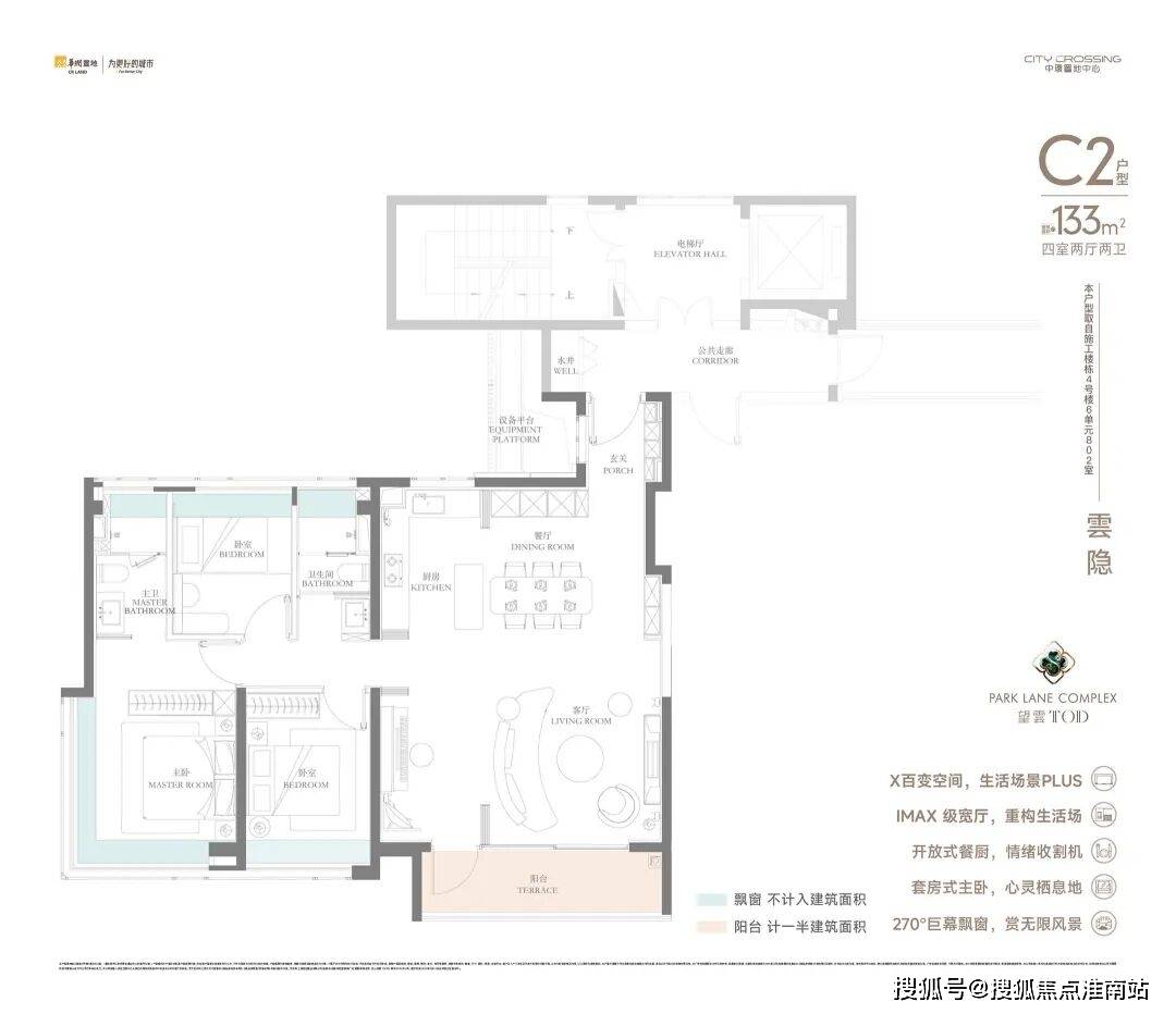 位于2#号楼,是地块内唯一南向面对景观资源的楼栋,对望南大走马塘水岸公园(规划中),将水岸生活酿成诗,是城市中心难再觅的奢侈。尊享建面约188㎡同款专属电梯厅,四开间朝南,打造出巨幕式家庭大公区;主卧卫生间,采用双台盆设计;270°环幕飘窗,把风景“写”进日常,让每一寸空间都流淌着自然诗意。