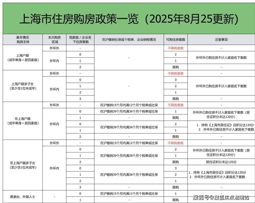 非沪籍居民家庭/单身人士:社保/个税满1年可在外环外不限购;满3年可在外环内限购1套