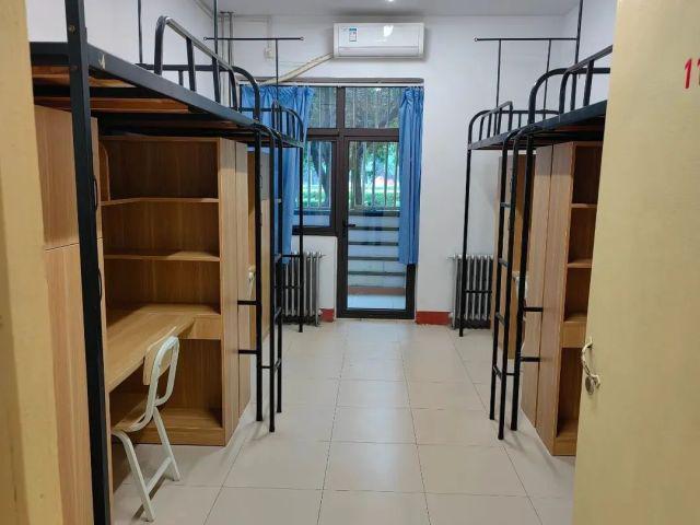 床品设计也特别懂学生心思,四人间里很多都是上床下桌的经典布局,每个人都有独立的书桌和衣柜。书桌宽敞到能同时摊开课本、电脑和零食,衣柜更是能塞下四季的衣服,连行李箱都能妥妥收纳。住在这样的宿舍里,既能和室友热热闹闹相处,又能拥有属于自己的私密空间,简直是完美平衡。